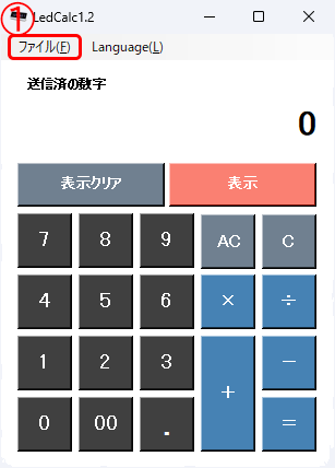 数字ボタンの「1」「2」「3」「4」をクリックしその後、表示ボタンをクリックします。初回の場合1~2 秒後にLEDND表示機に「1234」が表示されれば、LEDND の動作は正常です。